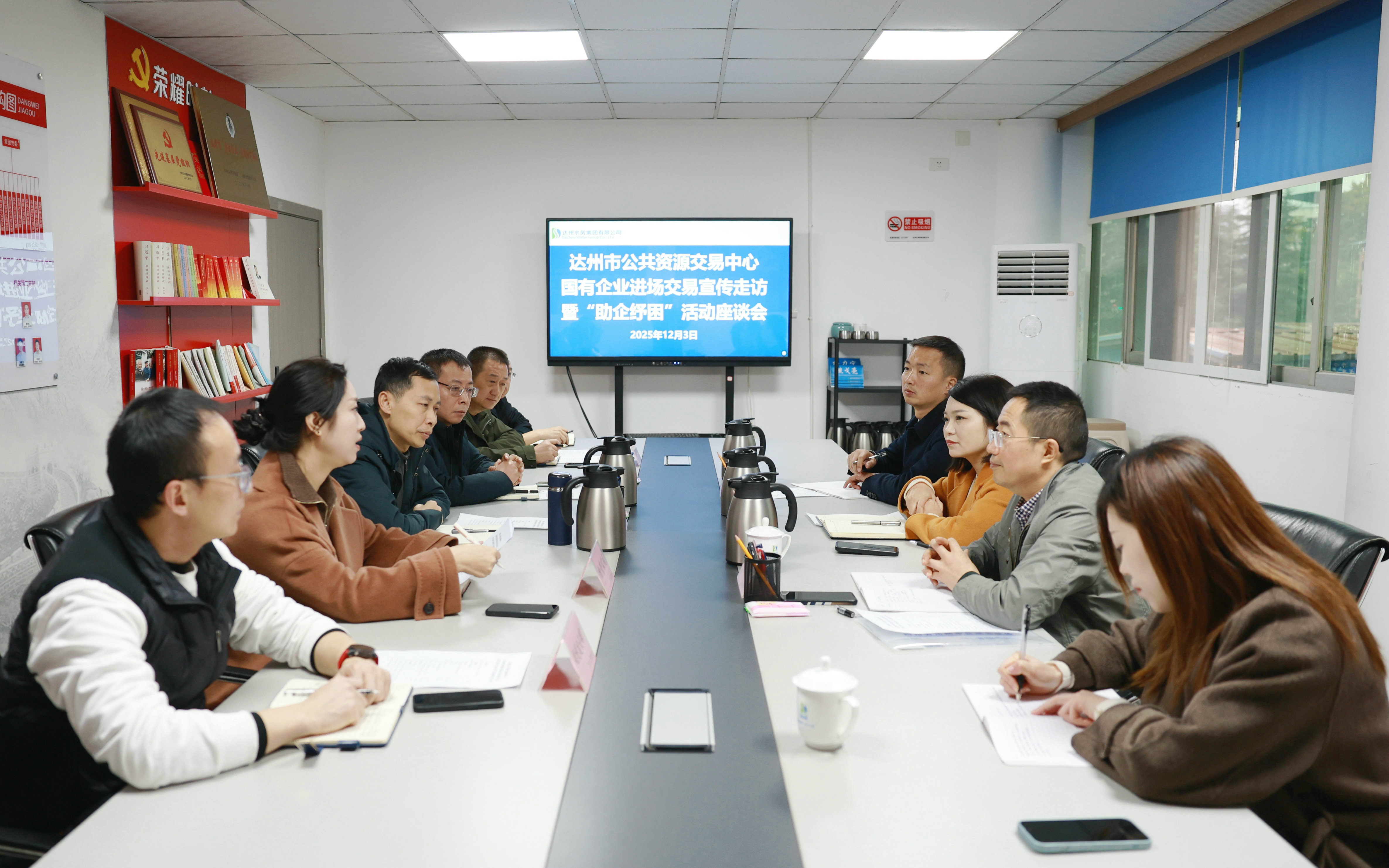 12月3日上午,市公共資源交易服務(wù)中心副主任陳曉云帶隊(duì)赴達(dá)州水務(wù)集團(tuán)開(kāi)展國(guó)有企業(yè)進(jìn)場(chǎng)交易宣傳走訪(fǎng)暨“助企紓困”活動(dòng)座談會(huì),集團(tuán)黨委委員、副總經(jīng)理?xiàng)盍帲h委委員、副總經(jīng)理、財(cái)務(wù)總監(jiān)朱亞成和集團(tuán)相關(guān)部門(mén)參加。