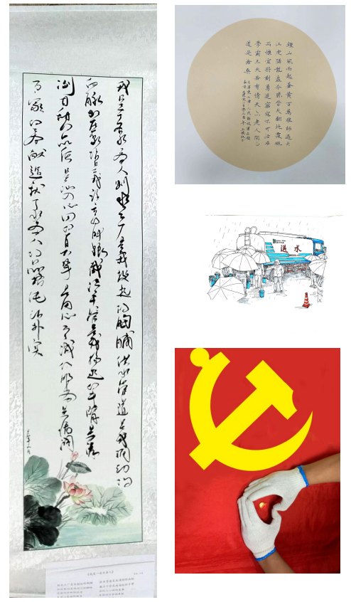 為了確保參賽作品評(píng)選公平公正和專業(yè)性,此次大賽邀請(qǐng)了市書法家協(xié)會(huì)、市攝影家協(xié)會(huì)有關(guān)權(quán)威專家作為評(píng)委,對(duì)參賽作品進(jìn)行綜合評(píng)選。經(jīng)專家評(píng)委精心甄別,作品《七律·人民解放軍占領(lǐng)南京》《我是一名水務(wù)人》分別斬獲硬筆書法和毛筆書法一等獎(jiǎng),《送水》獲得繪畫一等獎(jiǎng),《不忘初心,砥礪奮進(jìn)新征程》獲得攝影比賽一等獎(jiǎng),大賽分別評(píng)選出二、三等獎(jiǎng)及優(yōu)秀作品若干件。