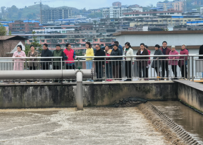 活動中,周家壩污水廠科長蘭和平帶領代表們沿著污水處理工藝流程,逐個參觀講解,讓代表們近距離觀察污水如何由“濁”變“清”。